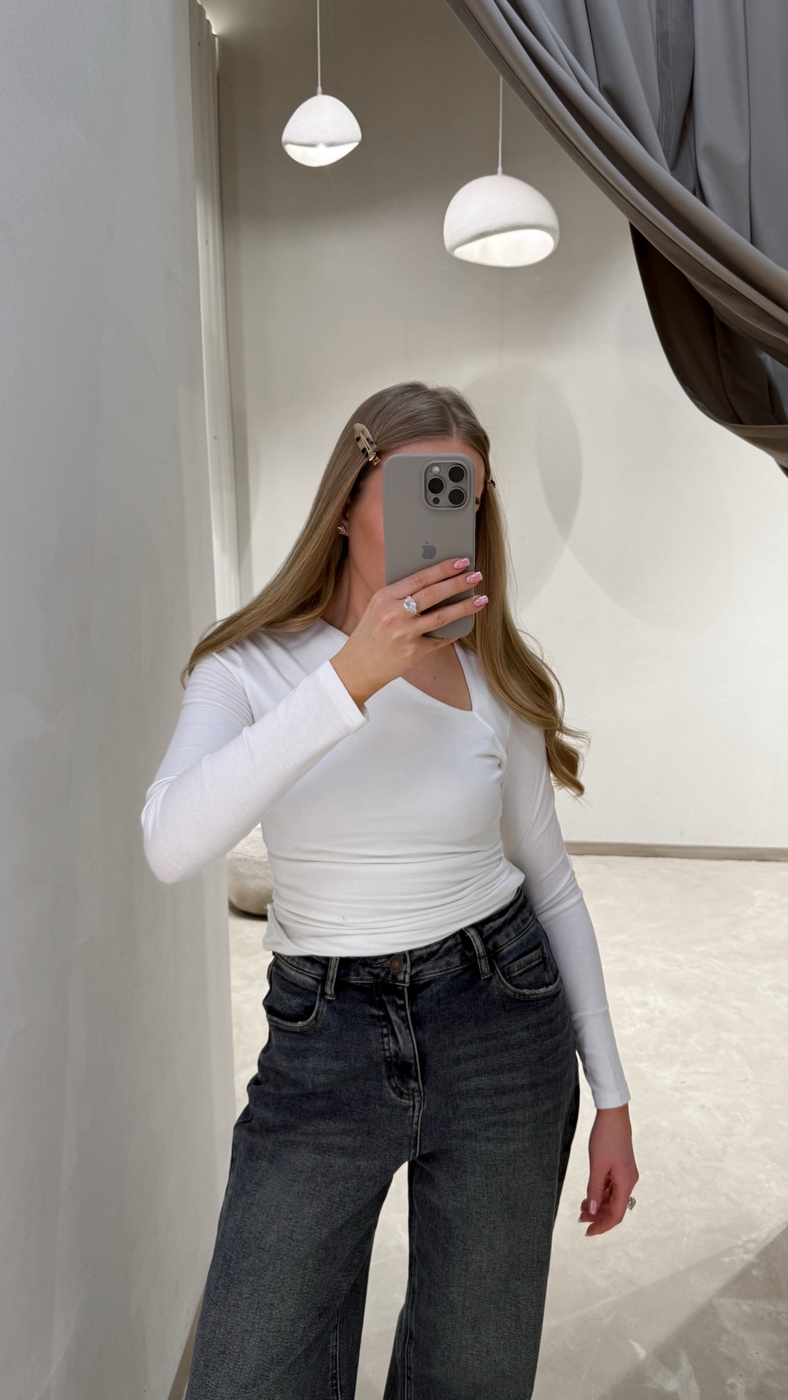 Лонгслив с асимметричным вырезом горловины и длинным рукавом. Прилегающий крой со сборкой по боковым швам. Выполнен из эластичного гладкого трикотажа.
