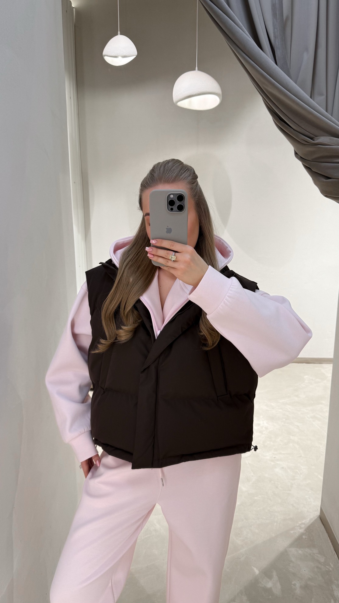 Утепленный стеганый жилет прямого кроя без рукавов. Застежка на молнию с планкой на кнопках. Воротник-стойка. Прорезные боковые карманы. Низ с регулировкой по ширине.
