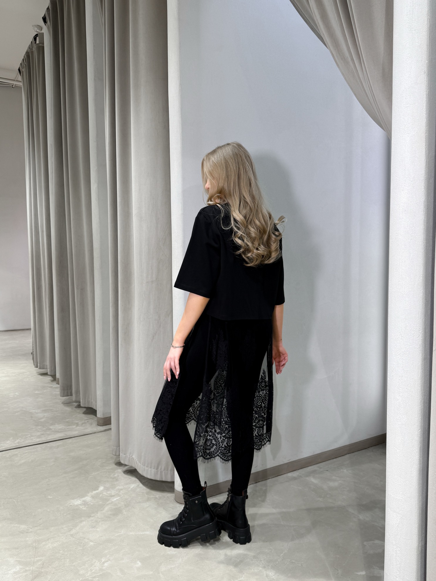 Футболка свободного кроя с укороченной длиной и спущенной линией плеча. Круглый вырез горловины. Короткие рукава. Контрастный принт на груди. Хлопковый трикотаж.