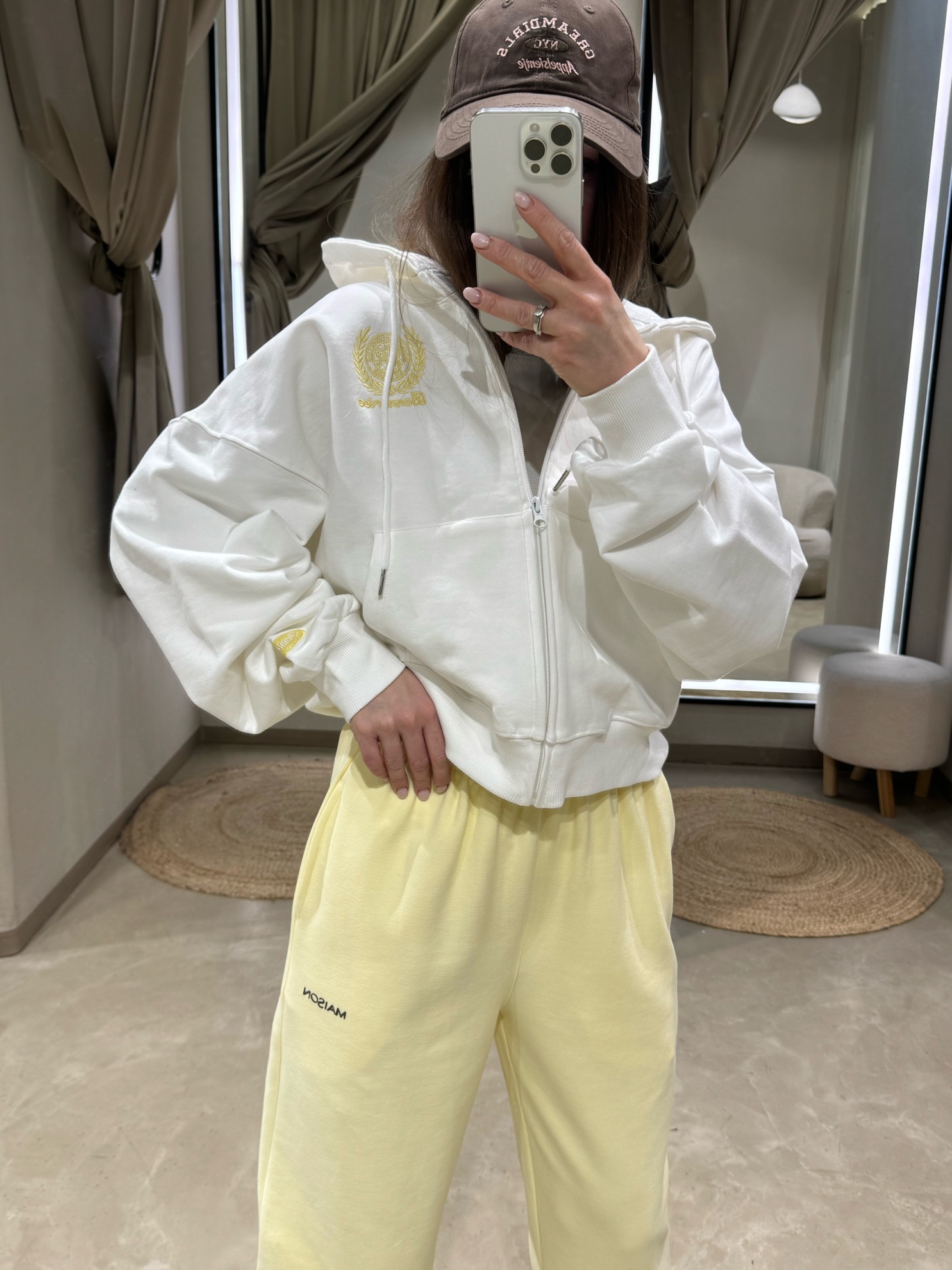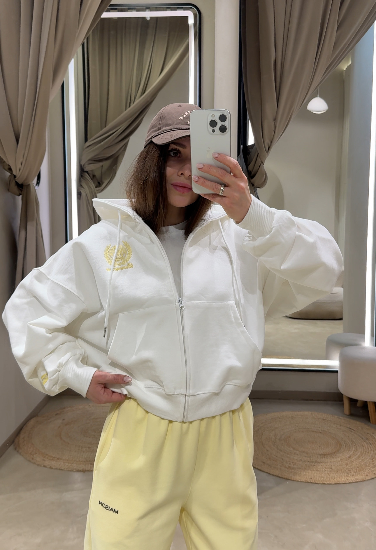 Худи на молнии с капюшоном и накладным карманом-кенгуру. Свободный крой с заниженной линией плеча, длинные рукава на трикотажных манжетах, эластичная резинка по низу. Контрастная вышивка спереди и на спинке. Хлопковый трикотаж.