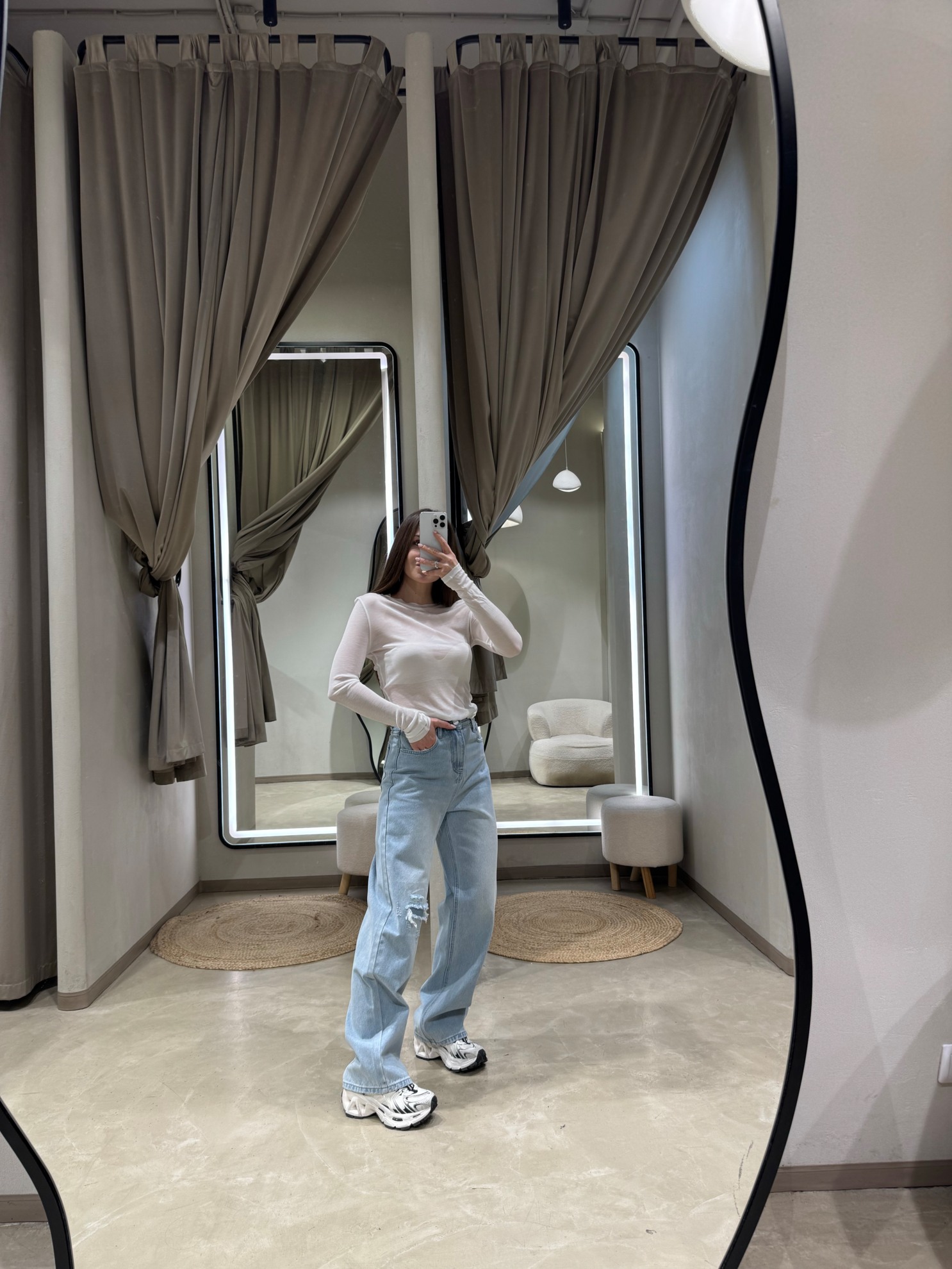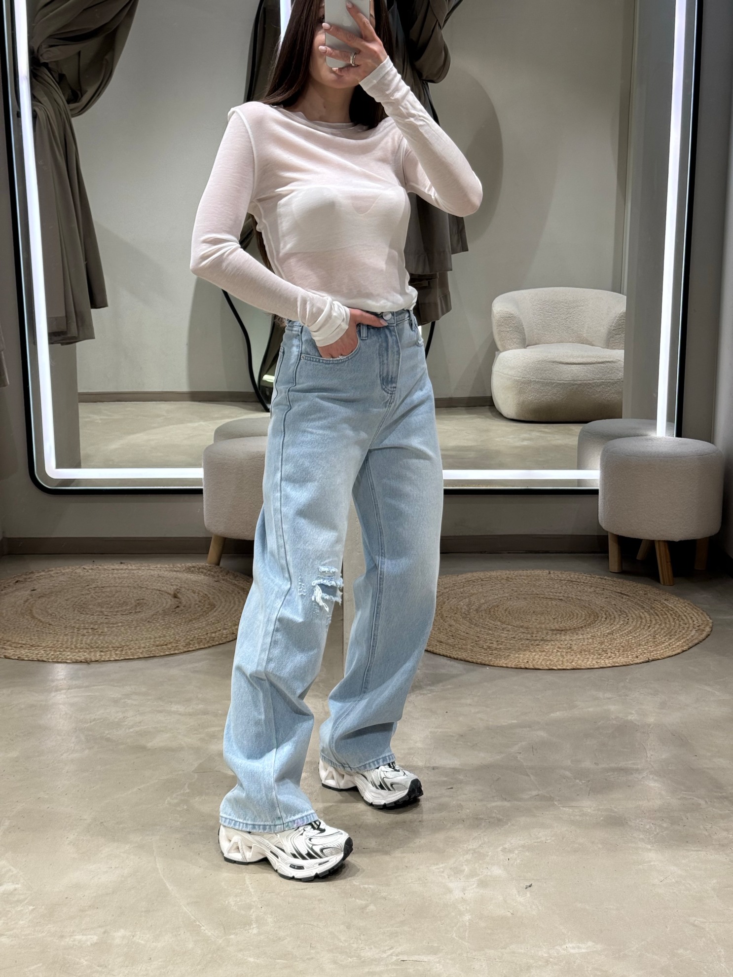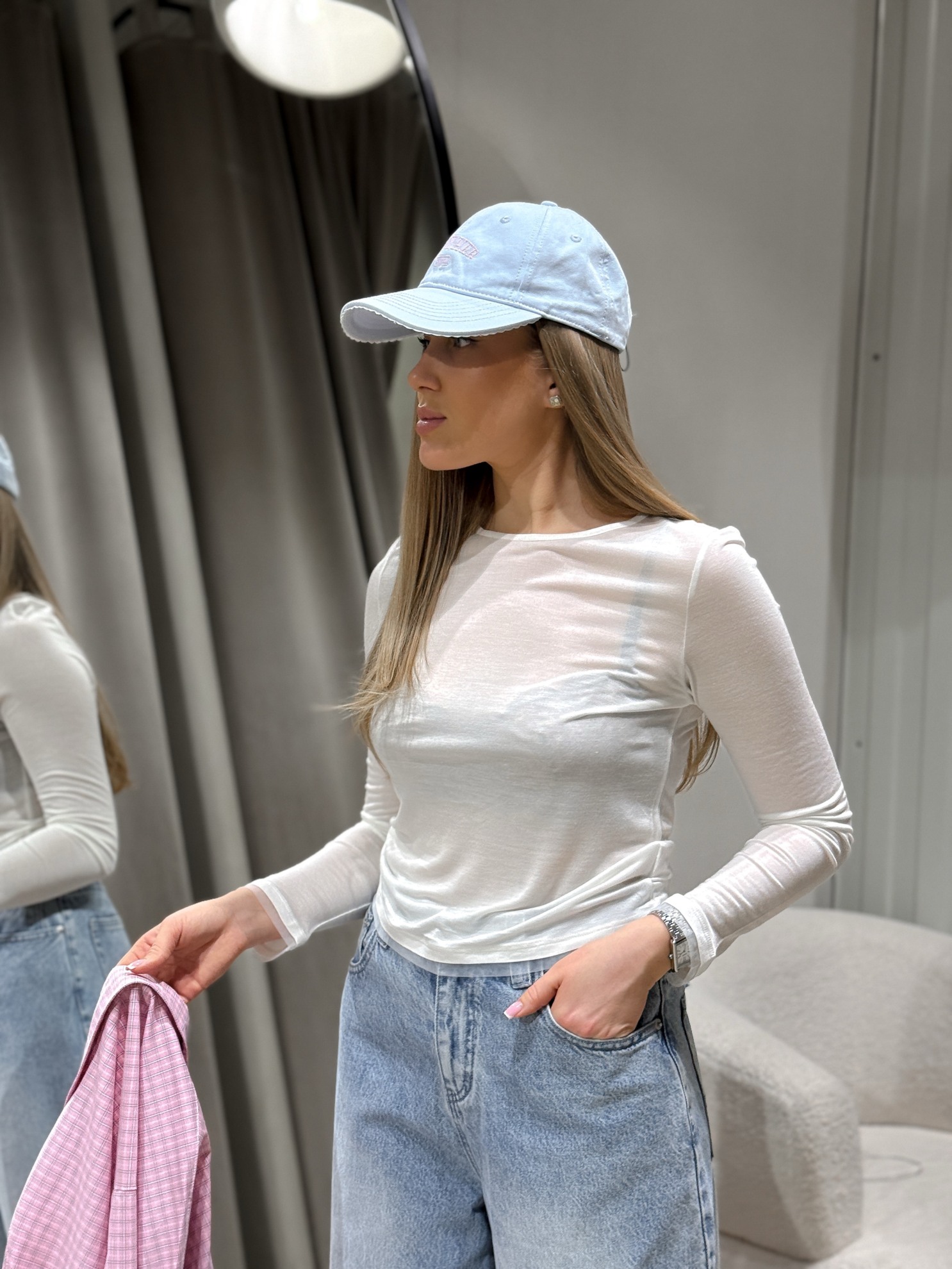 Полупрозрачный лонгслив прямого кроя с длинными рукавами и округлым вырезом горловины. Выполнен из мягкого эластичного трикотажа тонкой плотности с прямым нижним краем.