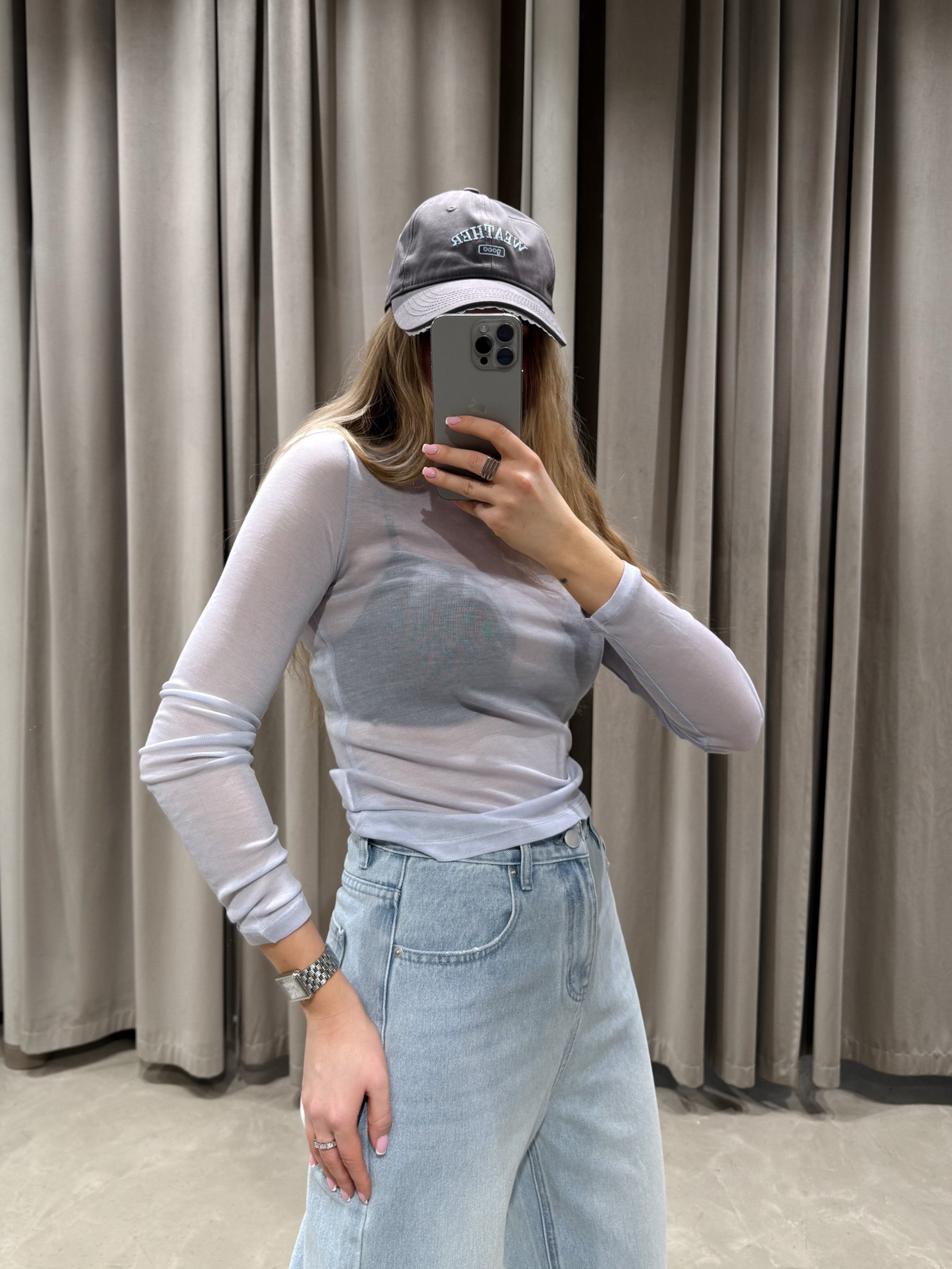 Облегающий лонгслив из эластичного полупрозрачного трикотажа с длинными рукавами и круглым вырезом горловины. Прямой низ.