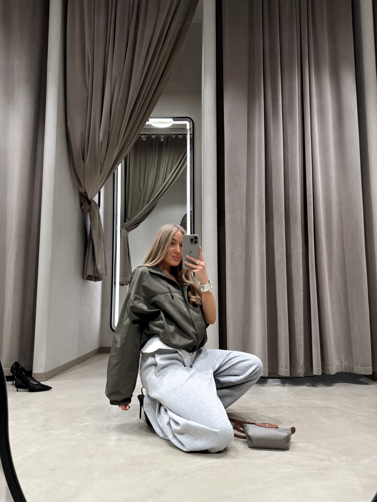 Укороченная ветровка свободного кроя на молнии спереди. Воротник-стойка, длинные рукава с эластичными манжетами. Эластичный низ по линии талии. Прорезные карманы по бокам. Однотонная плотная ткань.