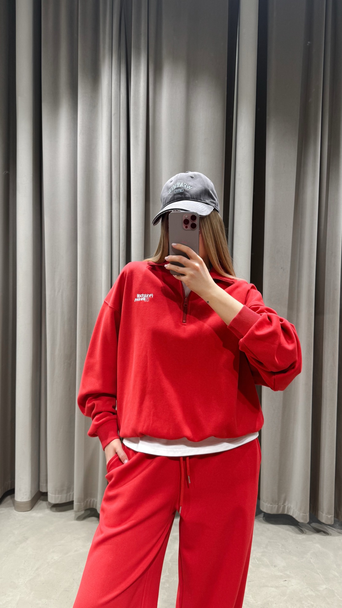 Трикотажный свитшот прямого кроя с укороченной молнией и длинным рукавом. Прямые брюки на эластичном поясе с кулиской и боковыми карманами. Контрастная подкладка низа свитшота.
