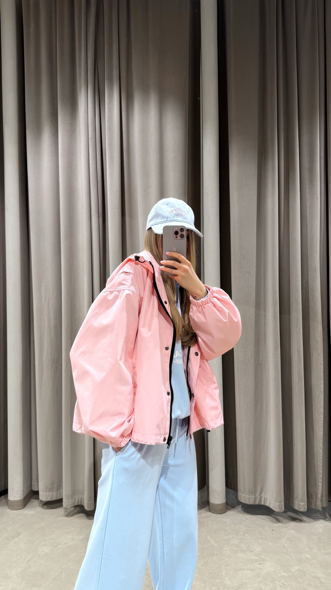 Легкая ветровка свободного кроя с капюшоном. Застежка на молнию и кнопки. Эластичные манжеты по рукавам. Прорезные карманы по бокам. Кулиска по краю капюшона.