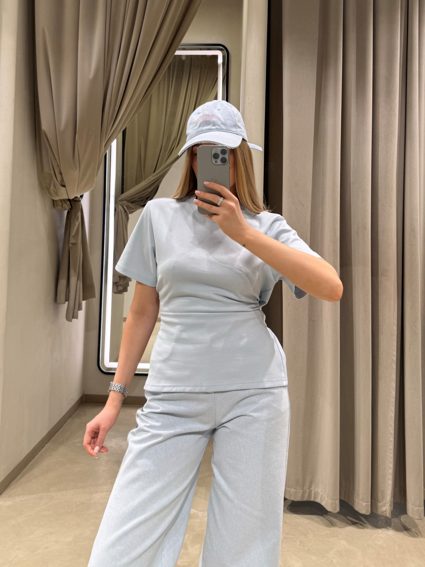 Футболка с коротким рукавом и круглым вырезом горловины. Приталенный крой с запахом и завязками на спинке. Однотонный эластичный трикотаж средней плотности.