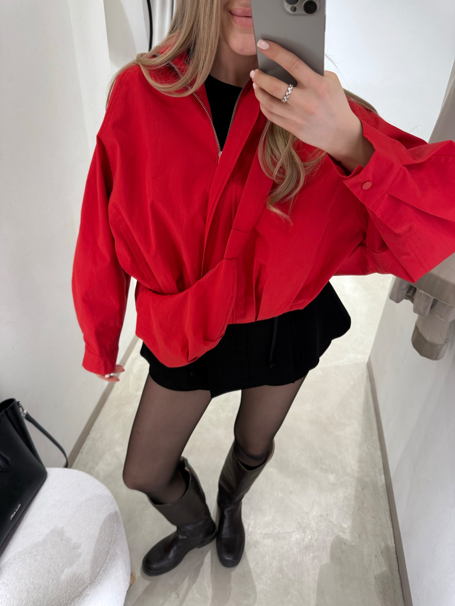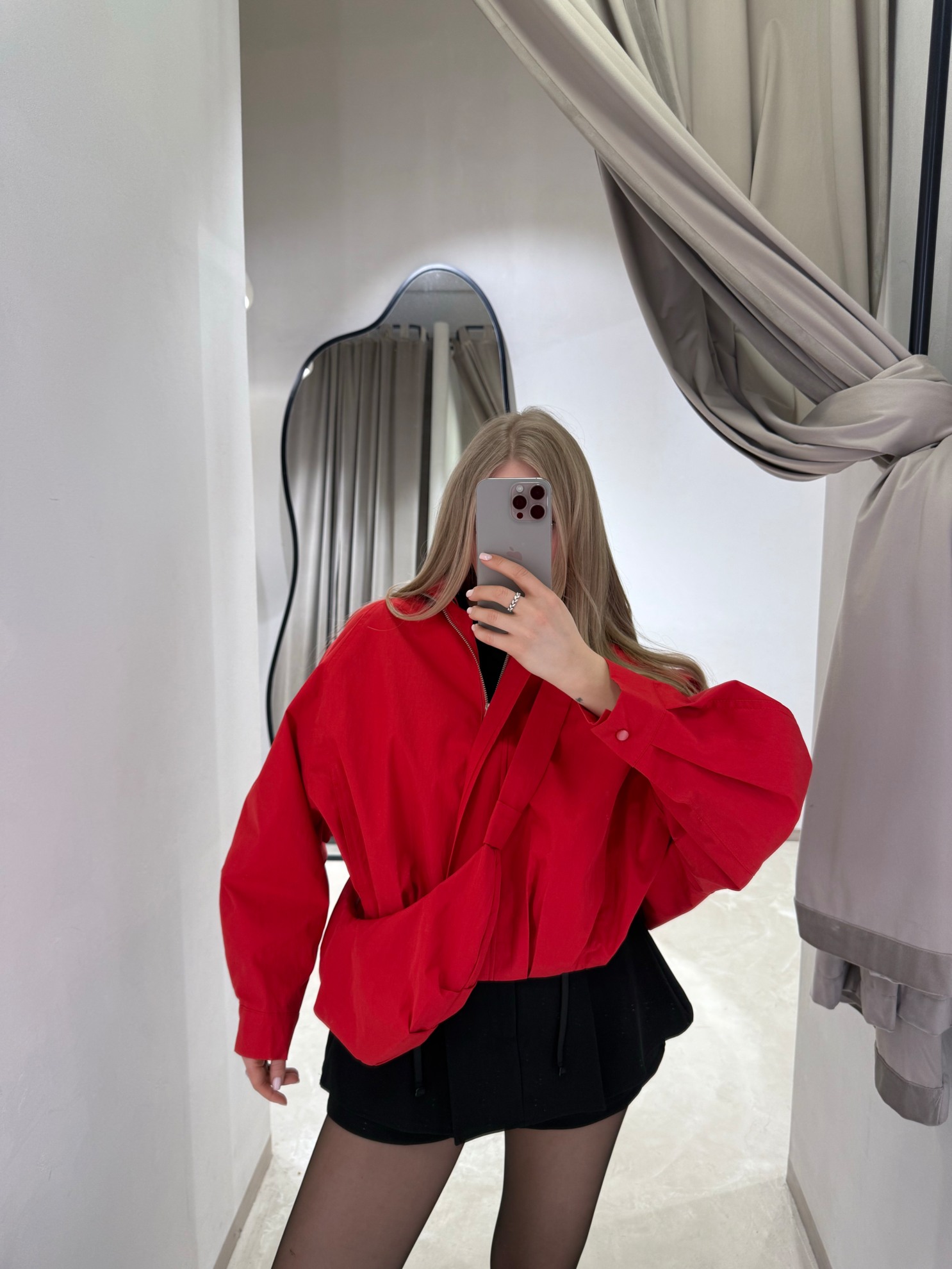 Легкая куртка прямого кроя со свободной посадкой и длинным рукавом. Манжеты на кнопках. Центральная застежка на молнию. Втачные карманы по бокам. Круглый вырез горловины. Низ на кулиске с регулировкой объема. Длина до линии бедра.