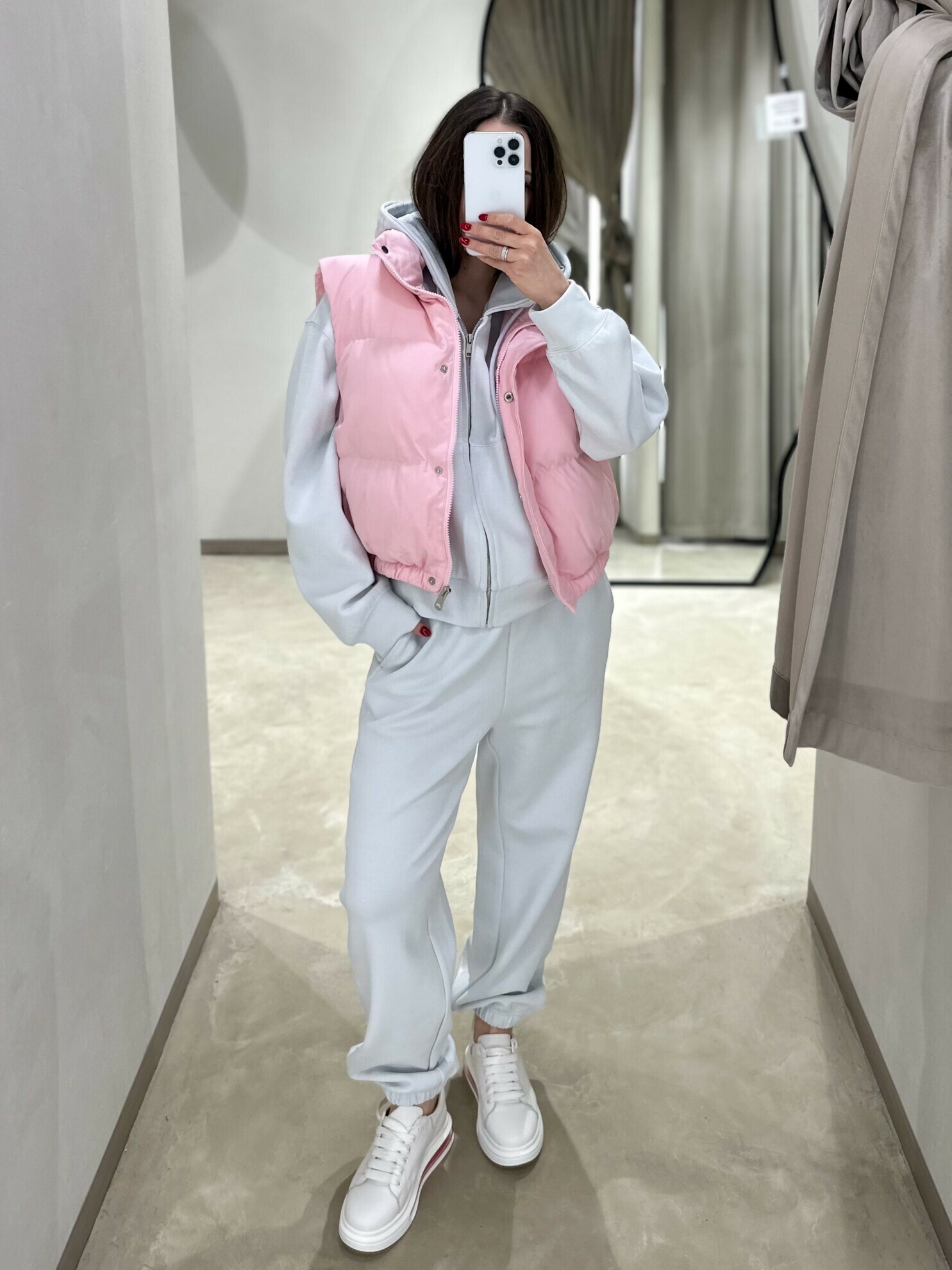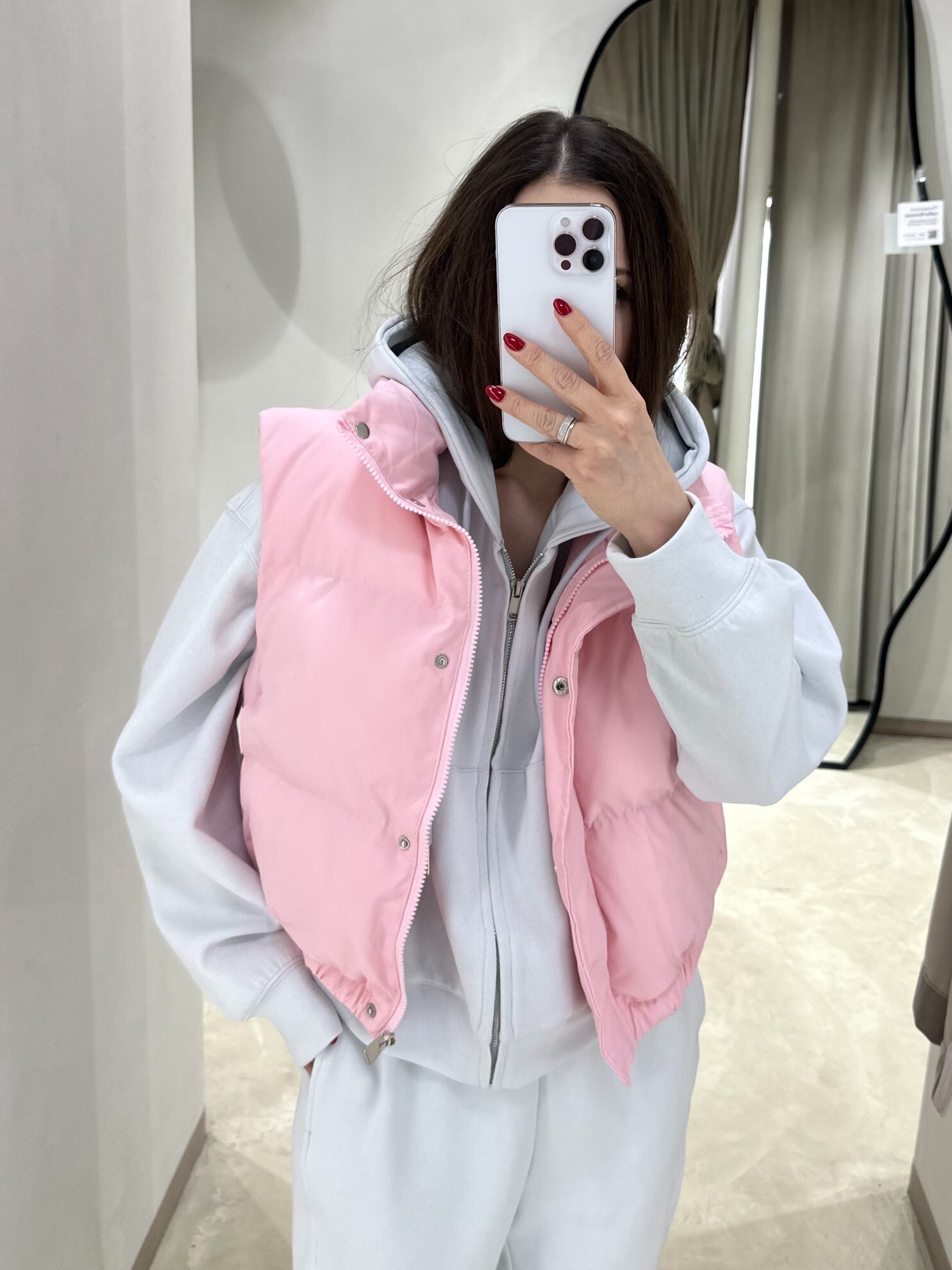 Жилет с укороченным кроем и застежкой на кнопки. Выполнен в мягком розовом цвете. Дизайн подчеркивает свободу движений и комфорт во время носки.